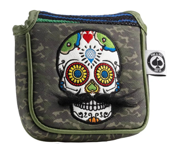 Mustache Sugar Skull - Mallet Putter Cover in Green Camo